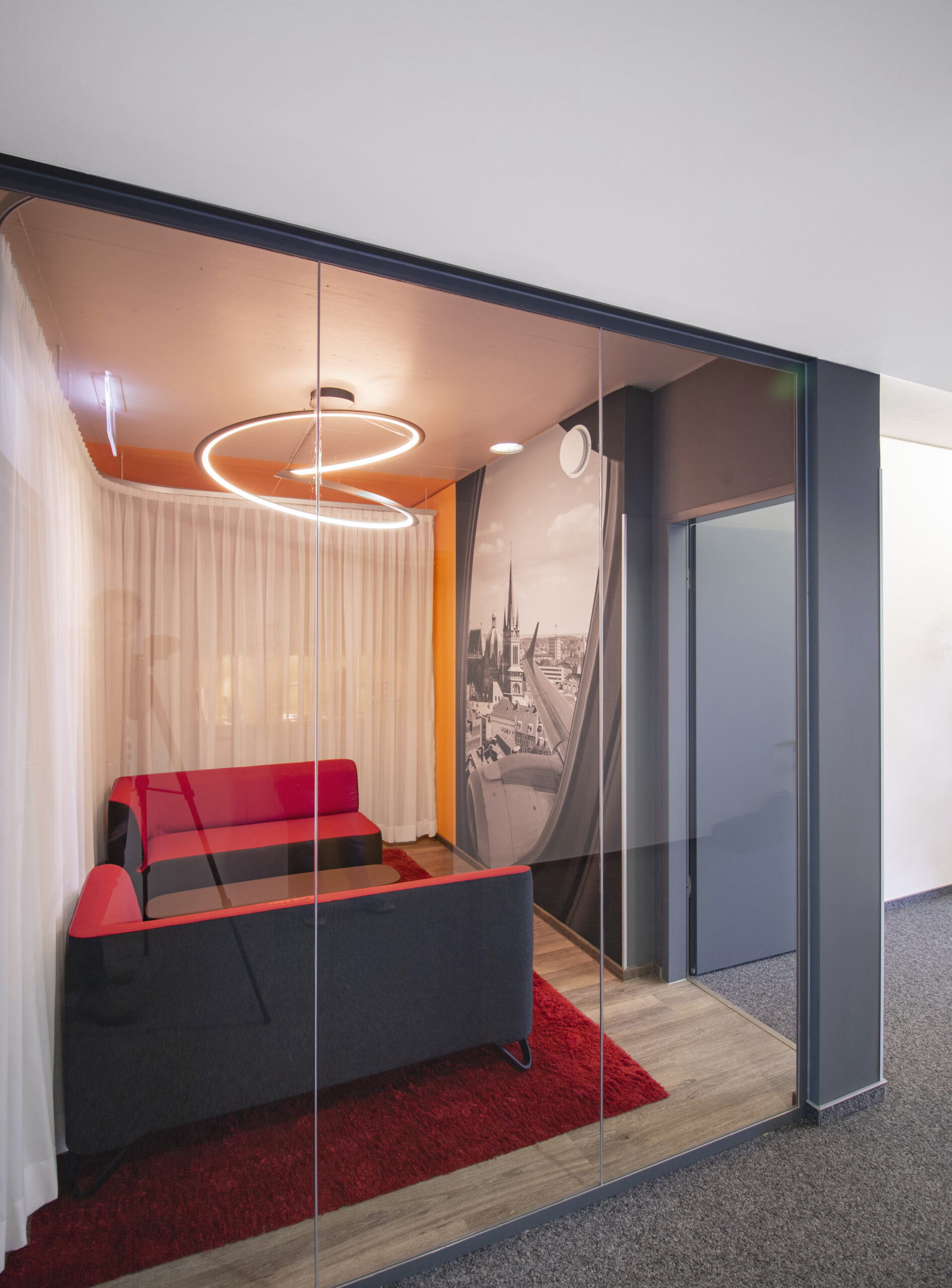 – Lieferung Einrichtung, Beleuchtung, Schallabsorber, Glasanlagen, Folierungen